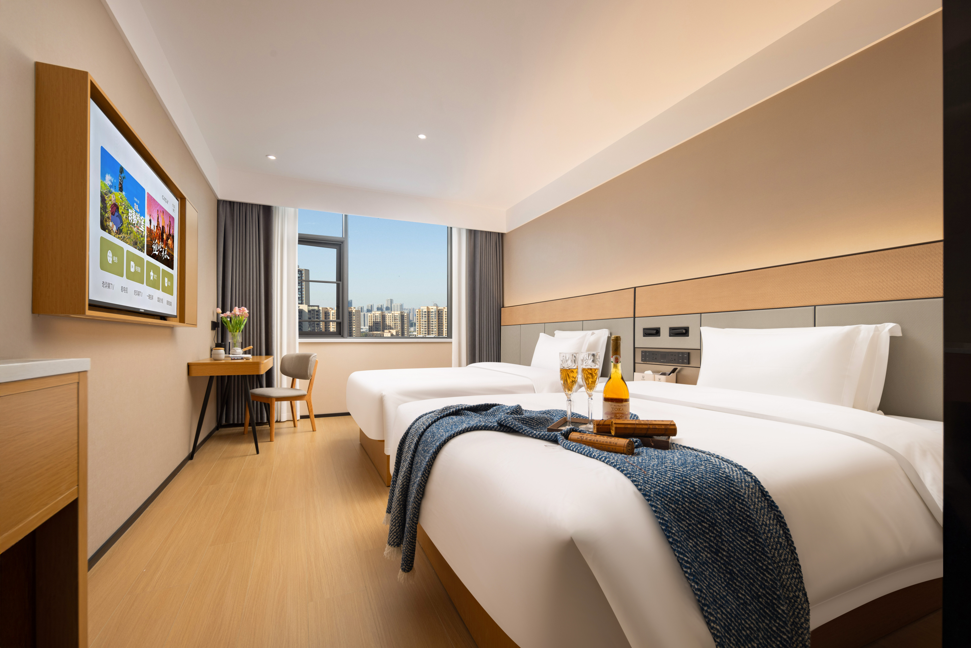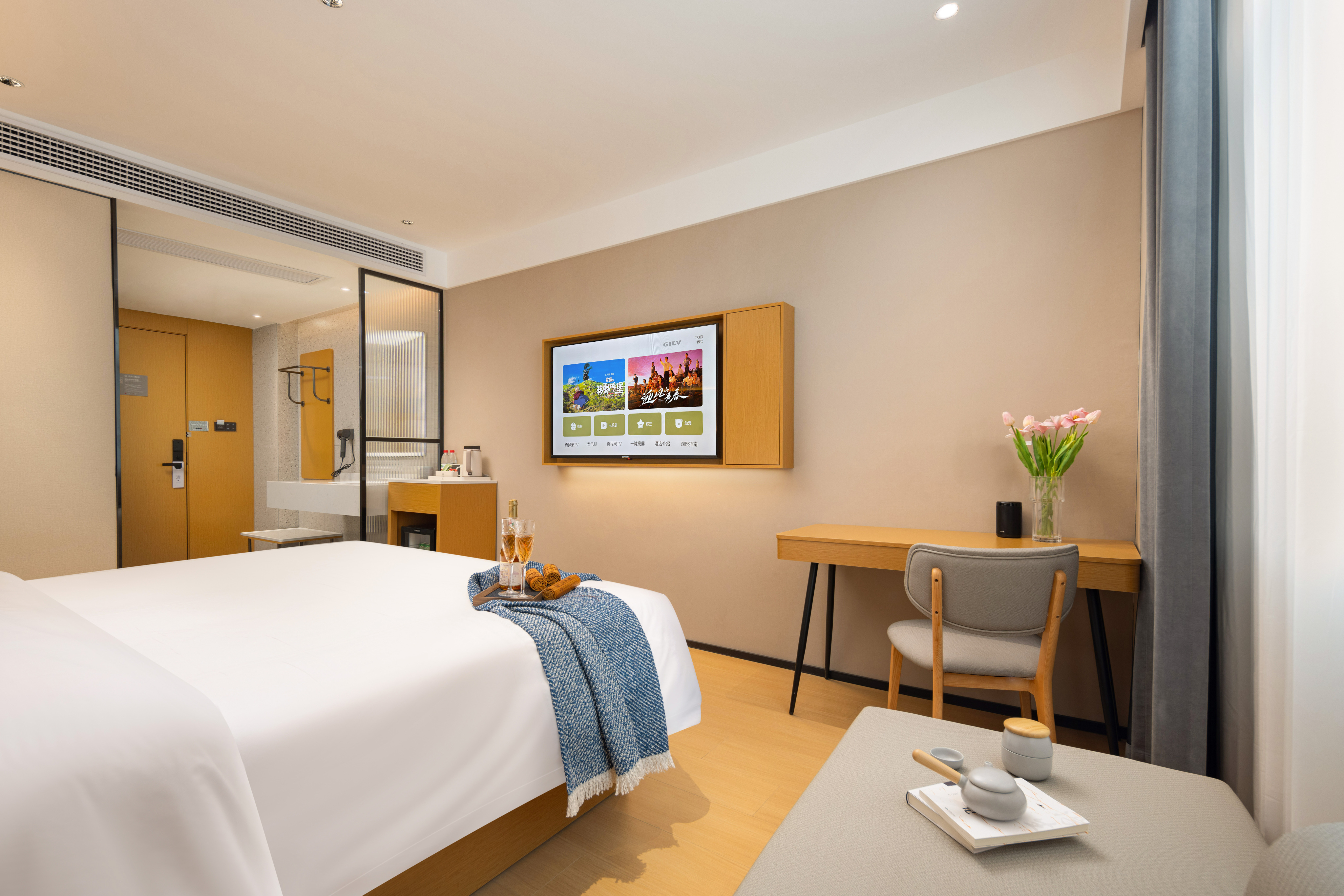 Adjacent to the Canglong Island Technology Park and surrounded by numerous universities, the hotel is nestled by the lake with convenient access to Metro Line 2 and multiple bus routes, ensuring quick connections to train stations and attractions like East Lake and Yellow Crane Tower. The area boasts bustling commercial districts, including Optics Valley Walk and Liangshantou, offering diverse dining and shopping options. Featuring smart room controls, modern accommodations, complimentary breakfast, 24-hour service, and business facilities, the hotel combines affordability with comfort, making it an ideal choice for business trips, campus visits, and leisure travel.